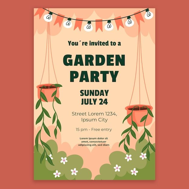 Kostenlose Einladung Gartenparty Vorlage zum Download. Gestalte individuelle Einladungen online, einfach und schnell. Perfekt für deine nächste Gartenparty. Sofortiger Download verfügbar.