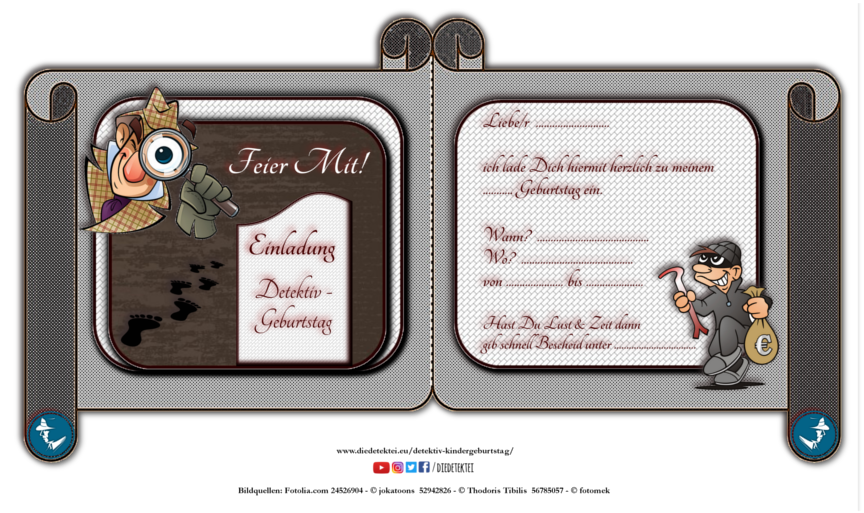 Detektiv Einladung Vorlage kostenlos als PDF zum Ausdrucken
