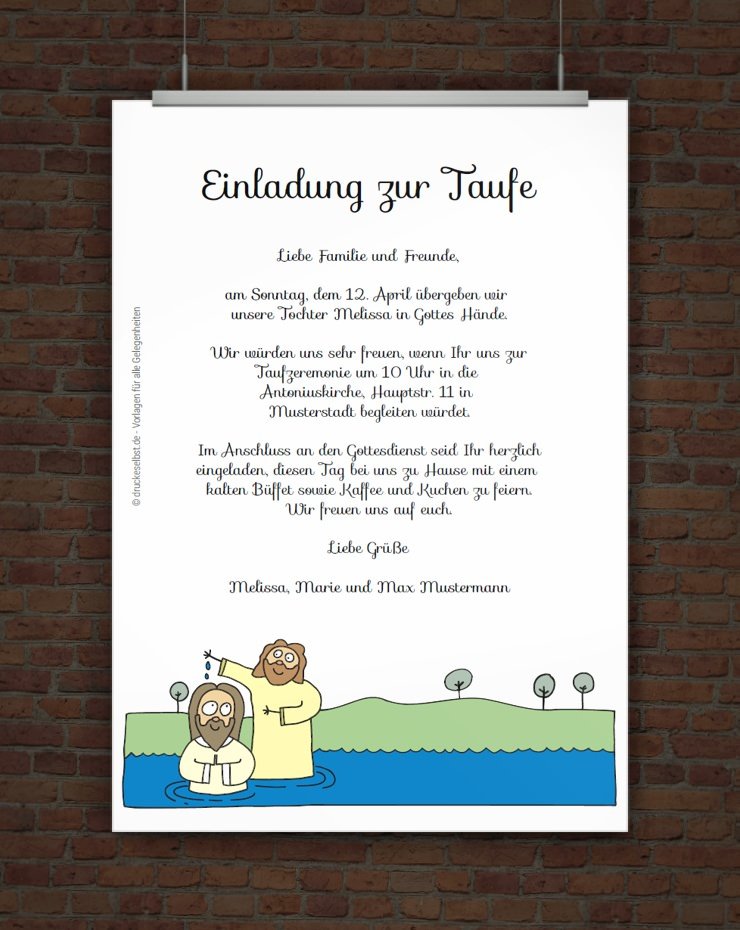 Kostenlose Taufeinladungsvorlage zum Downloaden – Gestalte mit Canva schnell und einfach bezaubernde Einladungen für die Taufe deines Kindes. Kreativ und individuell anpassbar.