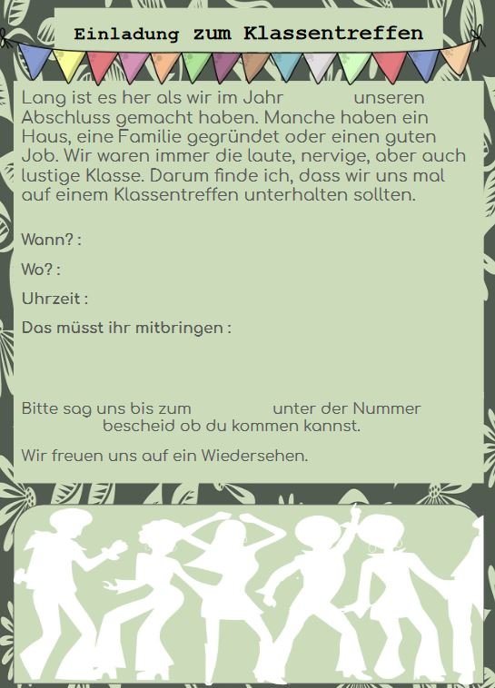 Einladung Klassentreffen Vorlage kostenlos als PDF zum Ausdrucken